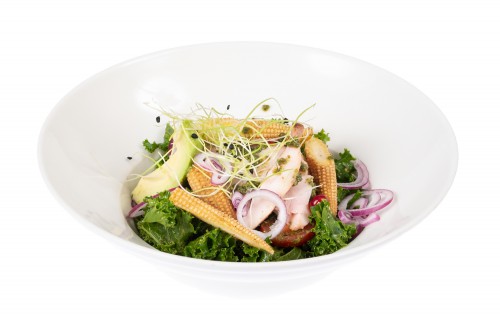 Tomātu - mocarellas salāti ar rukolu, bazilika pesto