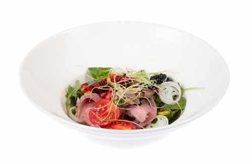 Tomātu - mocarellas salāti ar rukolu, bazilika pesto