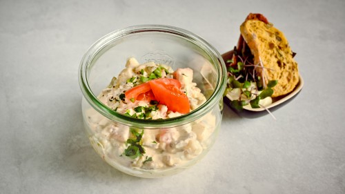 Klasiskie cēzara salāti ar grilētu vistas krūtiņu vai bekonu, cieto sieru, grauzdiņiem