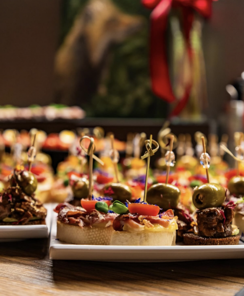 Laša tartars ar avokado, sarkano sīpolu, kaperiem, vakame, viegli vārīta paipalu ola, kviešu maizes grauzdiņu