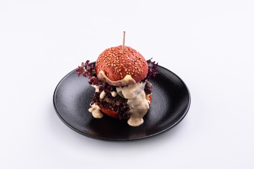 Mini liellopa burgers ar sīpolu marmelādi, čedara sieru