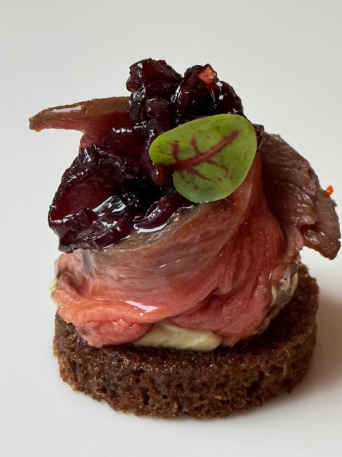 Rudzu grauzdiņš ar rostbifu, tomātu krēmu