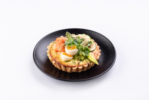 Laša tarte ar sieru, kaperiem un zaļajiem zirnīšiem