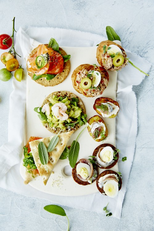 6 gb Kviešu crostini ar avokado salsu un garnelēm